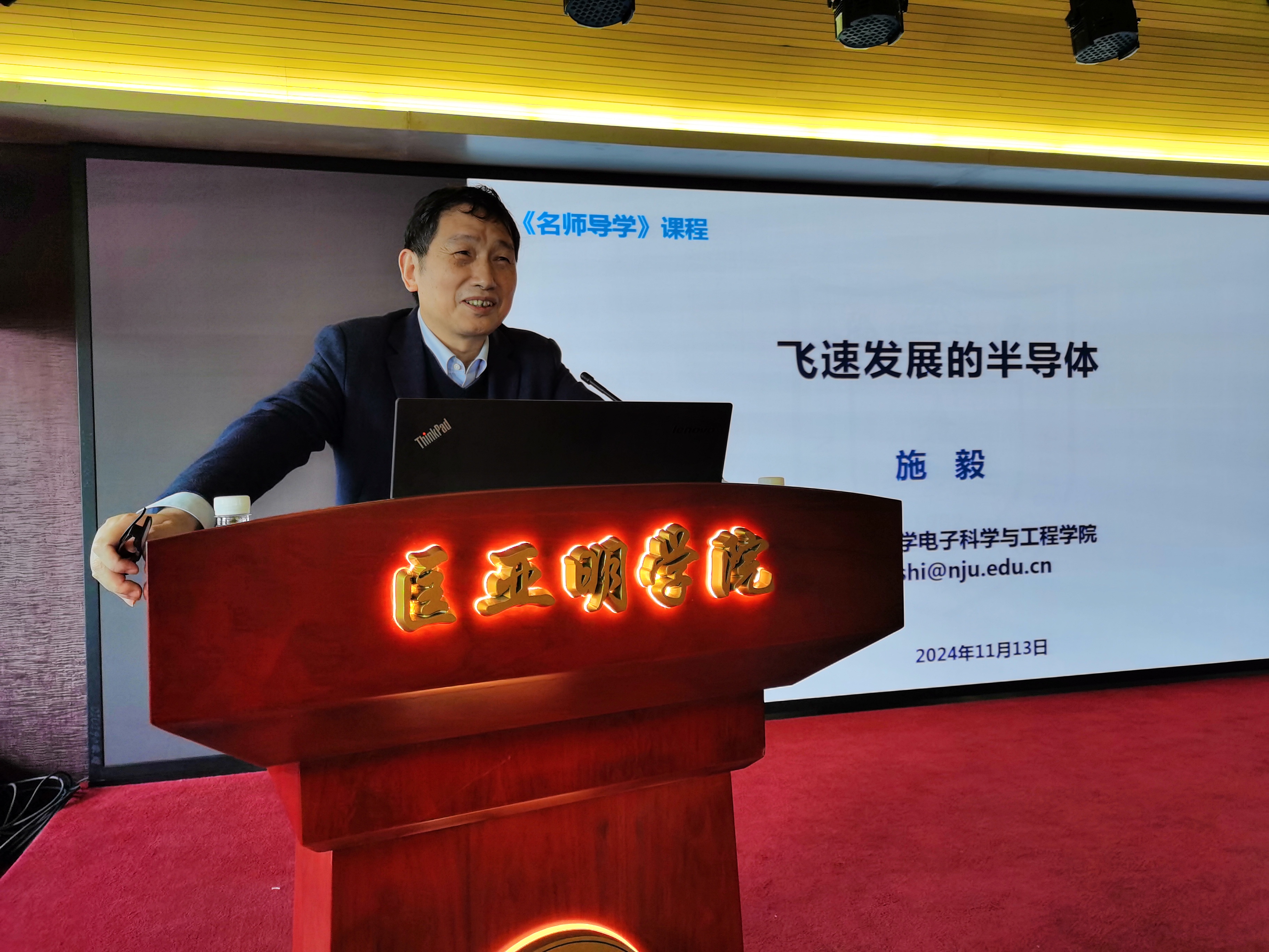 11月13日下午,24年秋季学期名师导学课程暨“科创筑梦”党团课第六讲如期进行。本次讲座邀请到南京大学电子科学与工程学院施毅教授,题目为《飞速发展的半导体》。