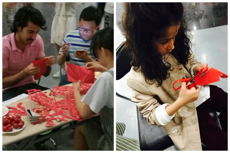现场四周的各种展台让各位留学生大饱眼福、口福。我们准备了特色美食,紫砂壶、七巧板、投壶、空竹、中国结、剪纸、古琴、书法、名著、麻将、折纸等丰富多彩的能够体现中国传统文化和艺术的展览。在参观过程中,留学生不断驻足欣赏,与负责展台的同学沟通交流,了解中国文化,学习中国传统手艺,让留学生们感受到了浓浓的中国风味。