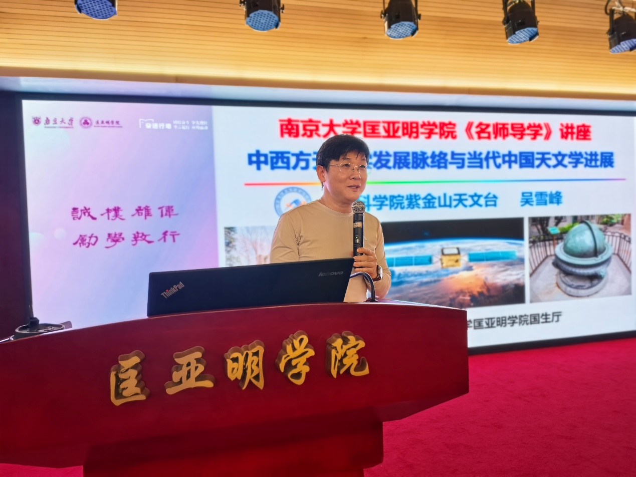 2025年9月24日下午,2025秋季学期的《名师导学》讲座、形势与政策暨“科创筑梦”党团课第二讲在南京大学匡亚明学院国生厅如期举行。本次讲座邀请到了中国科学院紫金山天文台副台长、匡亚明学院96级院友吴雪峰研究员,为匡亚明学院的本科生们带来题为《中西方天文学发展脉络与当代中国天文学进展》的精彩报告,并分享了他丰富的科研经历与人生感悟。