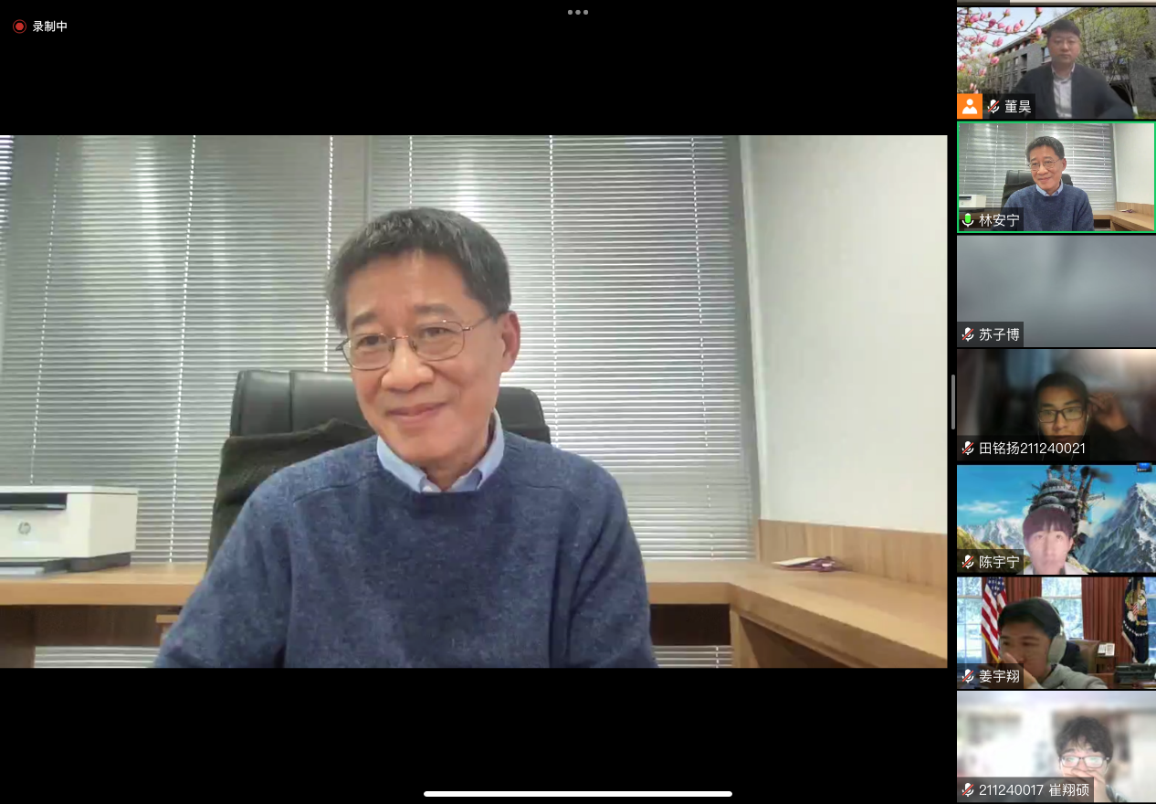 林教授曾任教于美国芝加哥大学二十余年,是细胞信号转导研究领域国际知名学者。他于2020年全职回国创立南京大学现代生物研究院。同学从林教授的报告中感受到了两代留洋学者前赴后继报效国家的情怀与追求,深受触动。讲座后,同学们纷纷踊跃发言,讨论不仅涉及学术领域,还涉及师生相处之道,氛围融洽而热烈。