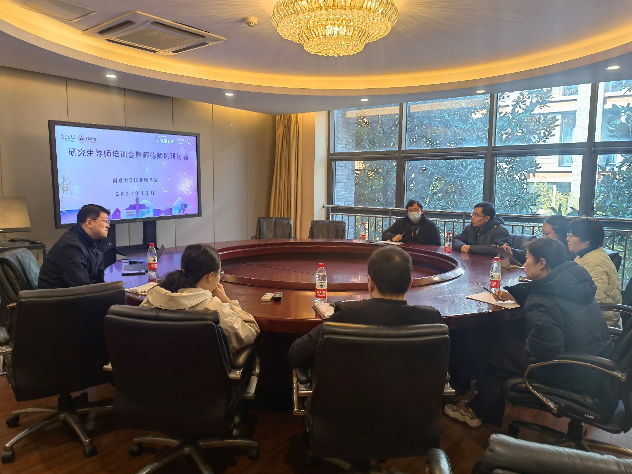 为深入贯彻落实习近平新时代中国特色社会主义思想、党的二十大及二十届三中全会、全国教育大会精神,贯彻落实习近平总书记关于研究生教育工作的重要指示精神,进一步落实研究生导师立德树人职责,12月30日,南京大学匡亚明学院召开“党建引领促发展,立德树人育新人”研究生导师培训会暨师德师风讨论会。学院党委书记周媛、党委副书记周安、副院长董昊、研究生导师、研究生辅导员参加会议。会议由学院副院长董昊主持。