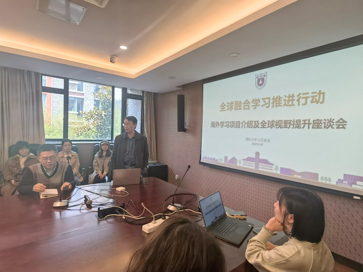 为提升学生的全球视野,在国际化的舞台上树立南大学子更好的形象,2023年3月15日中午,TIBIU 在院楼207会议室举办了“海外学习项目介绍及全球视野提升”座谈会。此次座谈会邀请国际交流处学生交流办公室负责人介绍国际交流项目,参与过国际交流项目的同学们分享参与项目的心得体会。TIBIU 党委书记、院长王骏出席活动并做指导讲话。