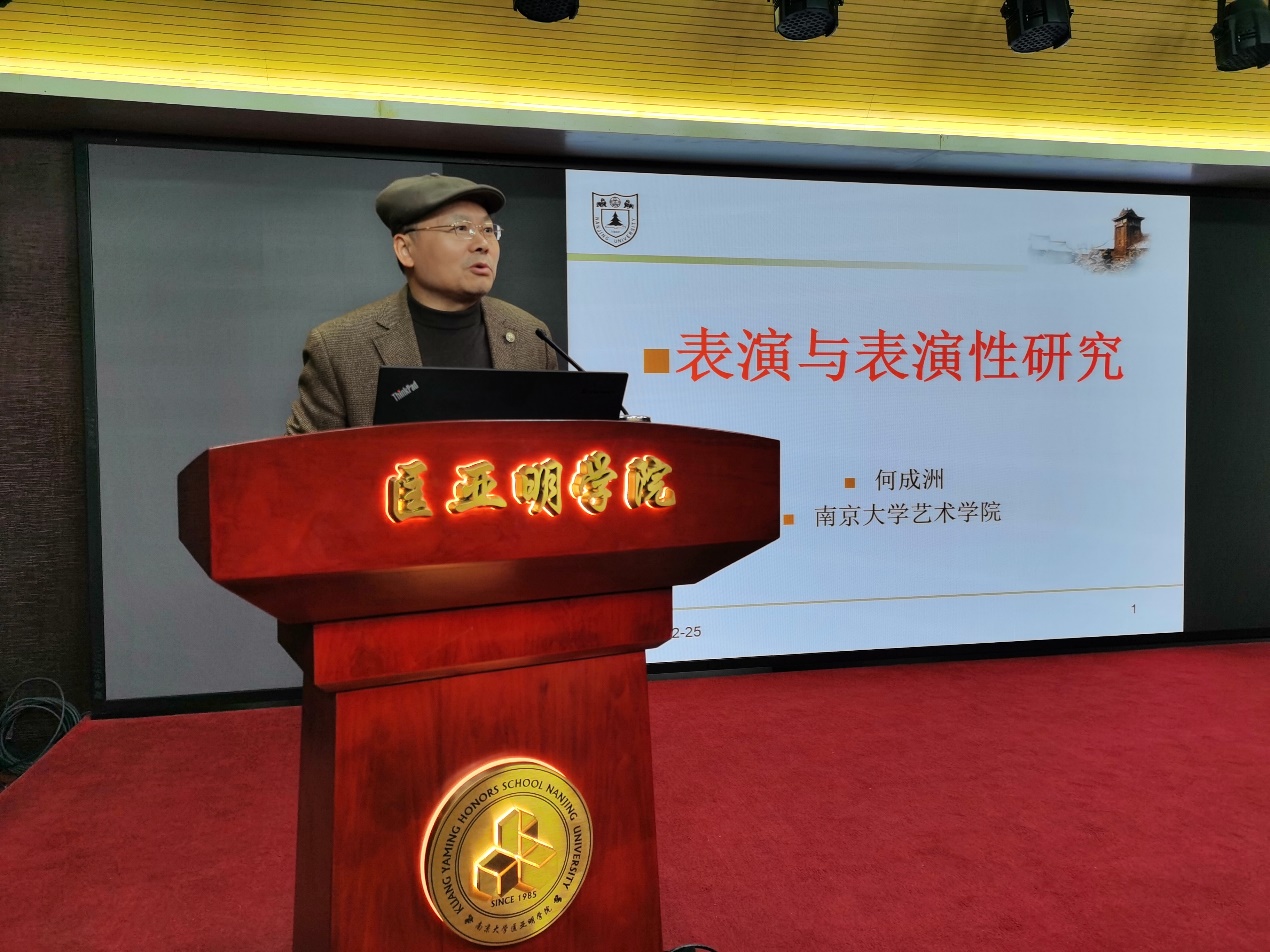 12月25日下午,2024年秋季学期名师导学课程暨“科创筑梦”党团课第十一讲如期进行。本次讲座邀请到南京大学艺术学院何成洲教授,题目为《表演与表演性研究》。