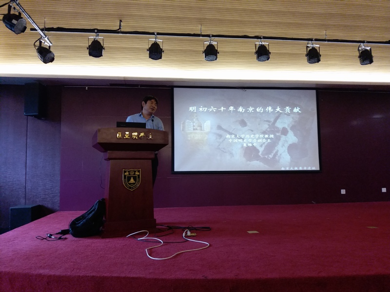 10月11日,名师导学第三讲邀请到了夏维中教授,夏维中教授长期致力于宋元明清社会经济与人文历史研究,在《历史研究》、《中国社会科学季刊》等刊物发表学术论文50余篇,曾多次赴美国、日本、韩国、法国、台湾、香港等国家和地区讲学,在海内外享有很高知名度,现为中国明史学会副秘书长。夏老师用诙谐幽默的语言给同学们讲述了明朝那点事,主题为《明初60年南京的伟大贡献》的讲座。在轻松愉悦的氛围下同学们领略到了南京这座历史古城的文化积淀和贡献。讲座由匡亚明学院副院长葛欣教授主持。