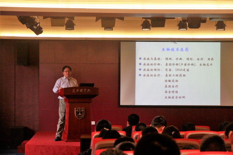 随后,华教授对生物技术所带来的医疗方面影响进行了一定介绍,如生物技术在医药方面的影响。他提出人类的寿命延长与生物技术关联密切,如疫苗减少了一些致死性疾病的发病率,以及配型为疾病的治疗提供了更为有效的途径。同时,他也对未来的健康状况监测作出一定的畅想,比如利用基因技术来实施体检,从而使疾病的预防更为有效。另外他放映一张基因芯片与纸质材料的对比图,从而显现出基因芯片的价值。