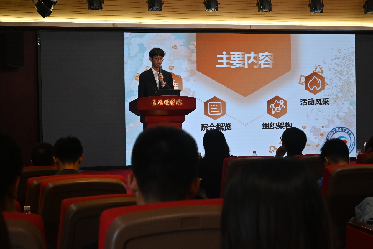 四校荣誉学院学生会代表依次以多元视角诠释了各院独具匠心的育人理念与学术追求,系统梳理了各学院学生组织的品牌项目,生动彰显了新时代荣誉学院建设的前沿探索。匡亚明学院学生会代表邱文宣阐述了学生会的工作理念和工作成果,体现了学生会全心全意为同学服务的宗旨和团结友善、务实高效、严谨活泼的工作作风。