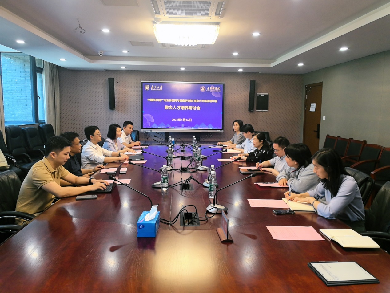 2025年5月26日上午,中国科学院广州生物医药与健康研究院副院长(主持工作)、1997级院友孙飞一行来我院进行座谈交流,匡亚明学院党委书记周媛、匡亚明学院党委副书记周安、匡亚明学院副院长董昊等参加座谈,双方就拔尖创新人才培养及深化合作交流等内容进行深入研讨。匡亚明学院党委书记周媛主持会议。