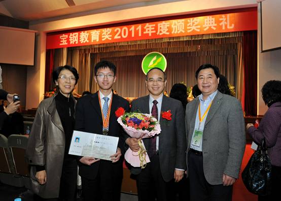 11月24日,2011年度宝钢教育奖颁奖典礼在宝钢人才开发院举行,宝钢教育基金会评审工作委员会委员、南京大学原副校长闵铁军,宝钢教育奖评颁工作部门负责人、南京大学发展委员会刘晓丽副主任,获奖教师代表、南京大学研究生院常务副院长许钧,获奖学生代表、南京大学匡亚明学院理科强化班2009级本科生朱宏宇一行四人应邀参加颁奖典礼。