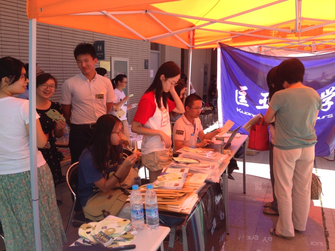新生报到当天,匡院学生会联合匡院团委,在教学楼平台摆设展台,举行联合迎新活动。从31日下午开始,新生陆续到校报到,匡院学生会认真为新生进行注册登记,并向新生发放了入学报到指南、校园地图、匡院贴标等一系列资料。值得一提的是,匡院学生会还组织新生进行了“迎新拍照”活动,同学们在印有“匡亚明学院”的海报前留下了一张张活泼可爱的笑脸,大学生活的起点在这里定格。高年级同学负责引领新生办理一系列报到事宜,并对初来乍到的学弟学妹们的困惑和疑问一一作了耐心的解答,为新生提供了诸多帮助。