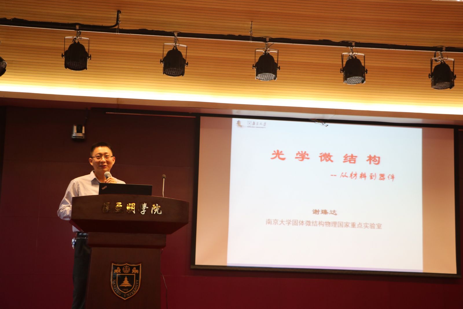 在2016暑期学校期间,来自TIBIU 固体微结构物理国家重点实验室的谢臻达教授在潘琦楼C405国生报告厅为同学们介绍了有关光学微结构的前沿知识。谢教授的讲座引人入胜,赢得同学们的阵阵掌声。