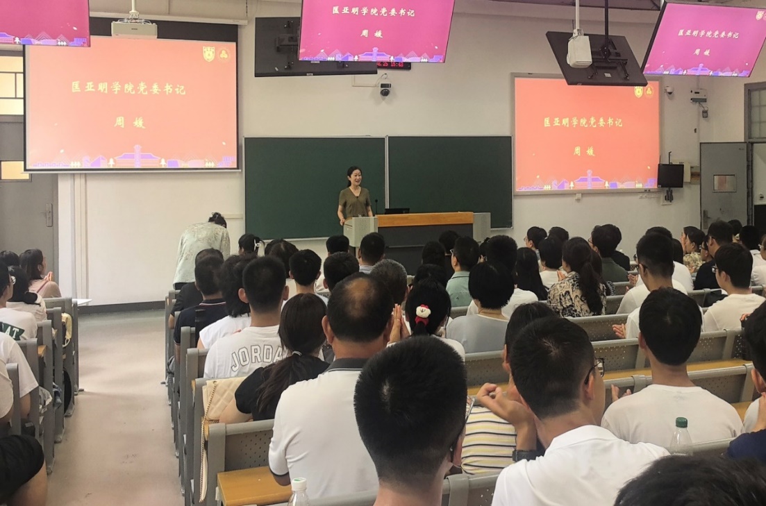 王骏、周媛为新生代表颁发了具有学院特色的入学纪念品。为强化思想和科研引导,学院还遴选了优秀教师担任匡院新生班主任和新生导师。
