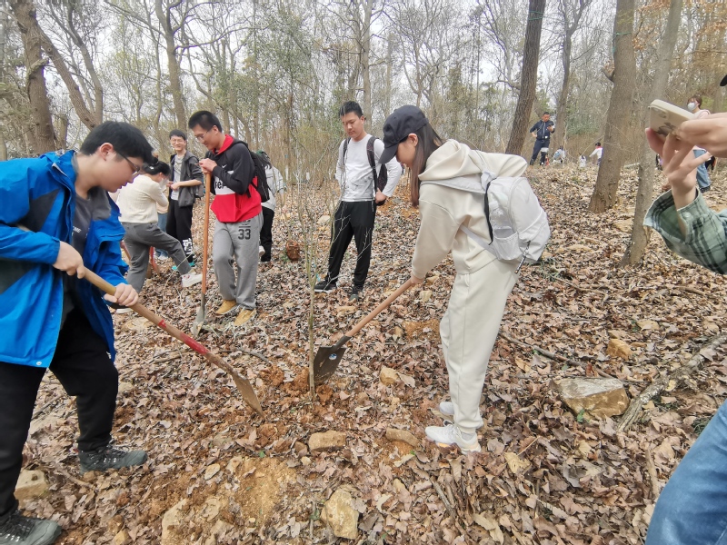阳春三月,绿绽枝头,栖霞风暖。3月11日,在第45个植树节来临之际,匡亚明学院组织本研学生前往栖霞山开展义务植树活动,用行动守护环境,传递绿色环保正能量。
