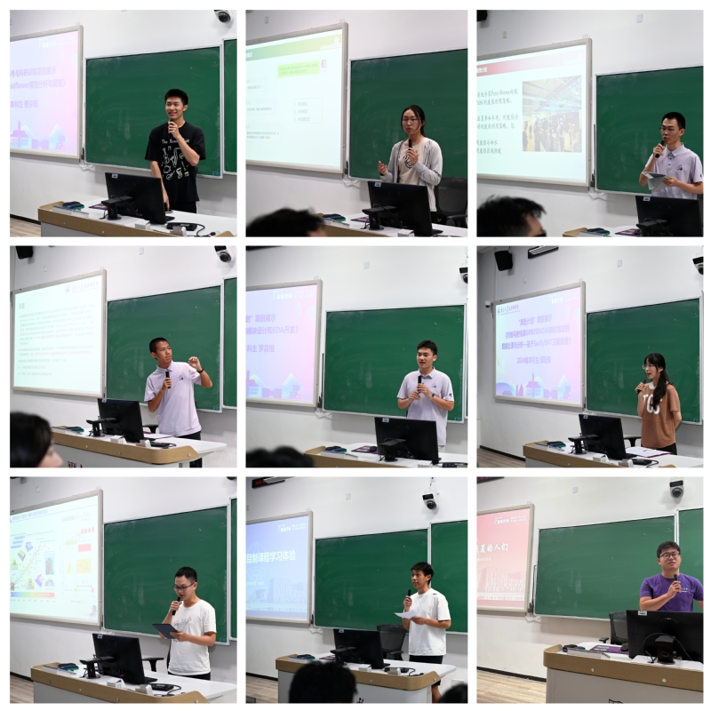 吴子涵同学分享了他获批2025年国自然青年学生基础研究项目(本科生)的创新实践,他聚焦低功耗芯片难题,通过新材料实现了亚阈值摆幅的重大优化。2021级本科生、2025 级清华大学直博生毛明新以视频回顾了拓扑超导体论文的发表历程,分享“不畏成败”的科研心得以传递自信。李泽同讲述了在参与“励行”课程中,在电子学院余林蔚老师带领下收获的“电子跃迁”式成长。王炳旭则分享了他作为学院“励行”支教团团长,带领二十余名本科生赴乡村开展的AI赋能支教,展现了学子们从实验室到田野的全面担当。