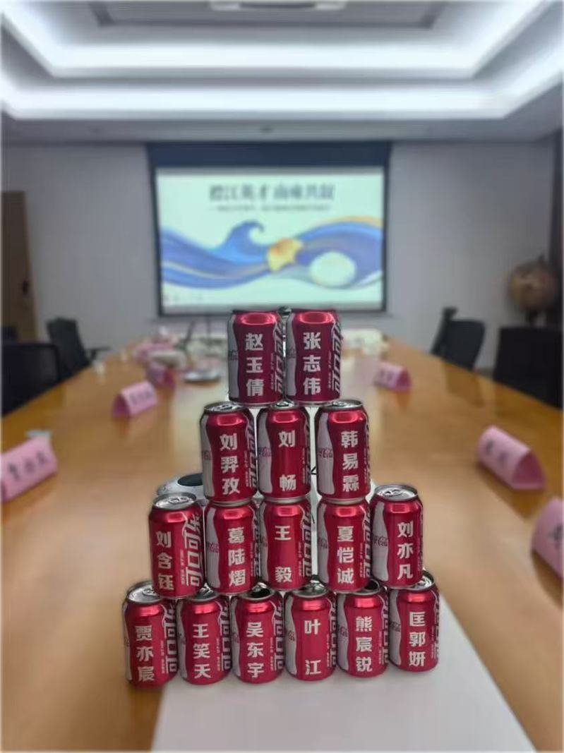 泰兴、靖江招生组还为同学们准备了独特的礼物——印着每一位同学名字的罐装可乐。紧紧堆叠在一起的可乐拉近了同学们的距离。