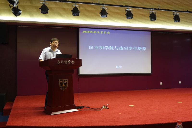 本次家长会由18级辅导员唐健老师主持。见面会开始,唐健老师对新加入匡亚明学院的同学和家长表示了热烈欢迎。之后,葛欣副院长为大家介绍了匡亚明学院与拔尖学生培养计划相关内容。他从匡亚明学院的发展历程、培养方法、精英人才教育培养理念与实践、院系所取得的成就、独特的教学课程体系、专业选择机制以及毕业生去向分布等方面为新生和家长做了具体而详细的介绍。同时他明确指出同学们需要关注的问题,特别针对大一新生第一学期的不同课程提出了独到的学习建议,并在最后用三句箴言鼓励大家抓住机会,实现理想。