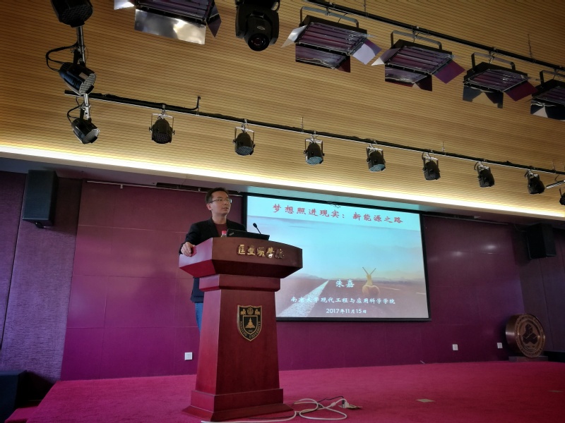 11月15日名师导学课上,来自南京大学现代工程与应用科学学院的朱嘉教授给同学们介绍了现代能源与材料的背景与发展前景。朱嘉教授毕业于南京大学物理学院,于美国斯坦福大学获得电子工程系硕士和博士学位,随后在加州大学伯克利分校和劳伦斯伯克利国家实验室从事新能源和环境领域的研究,在新能源和环境领域建树颇丰。讲座由匡亚明学院副院长葛欣主持。