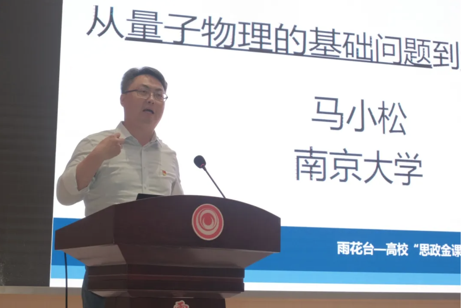 一代人有一代人的使命,一代人有一代人的担当。百年前的青年,为救国而留学,为报国而牺牲;当代的我们,为兴国而留学,为强国而奉献。马小松教授向在座师生们分享了自己留学归国、科技报国的经历,他从奥地利维也纳大学博士毕业后,师从2022年诺贝尔物理学奖得主安东·塞林格教授,在奥地利科学院量子光学与信息研究所度过了7年的研究生涯,后又赴美国耶鲁大学完成博士后研究。他从事量子光学实验、量子通信与量子模拟的实验研究,在利用现代量子光学的实验技术,实现对单光子与多光子量子态的产生、调控与探测,以及量子通信与量子信息技术的应用方面,发表了很多国际领先的科学成果。他鼓励同学们要树立强国梦想、珍惜青春时光、把握优质资源、参与国际交流、实现个人成长、助推科技自强、报效伟大祖国。