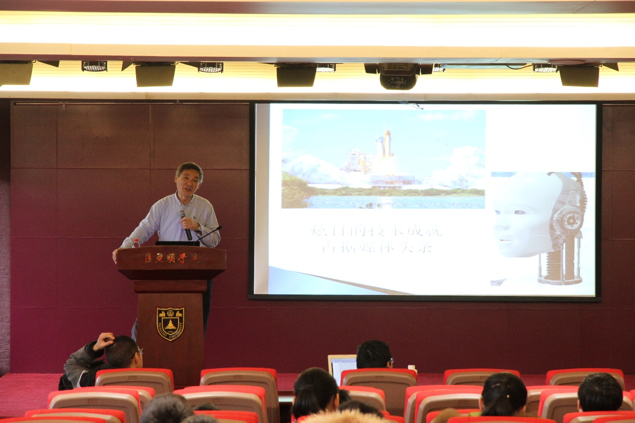 接下来,陈老师给同学们举例说明了信息技术将对我们生活带来怎样的革命,他认为我们正处在一场技术革命的前沿,无论是新一代的制造方式,和信息处理方法,都会带来社会生产力的巨大变化,而其中的推动力就是计算机科学。