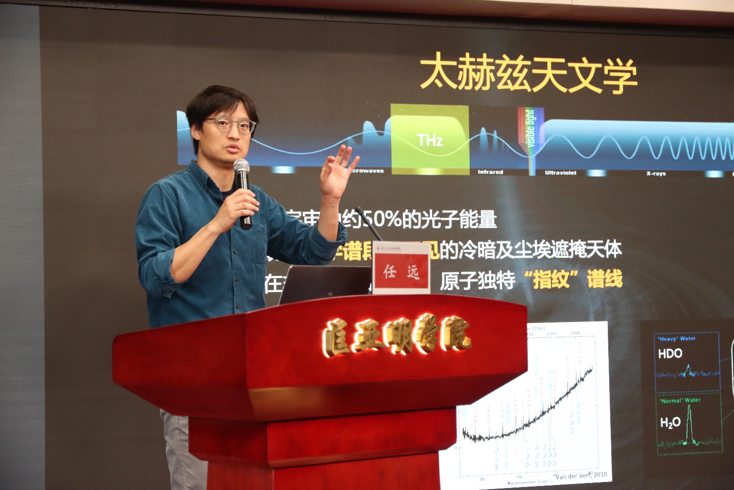 任远研究员从太赫兹波段的独特科学价值切入,系统介绍了其团队在超导探测器研制与太赫兹天文应用方面的突破性工作。随后,他以自己历时156天的南极太赫兹实验之旅为主线,为同学们铺开了一幅壮丽而艰辛的极地科研画卷。 从赤道落日的瑰丽到冰穹A极光的绚烂,从雪龙船穿越西风带的惊涛到昆仑站零下40℃的极寒,同学们感受到的不仅是自然奇观的震撼,更是科考队员直面暴风雪、设备故障与生理极限的坚韧。