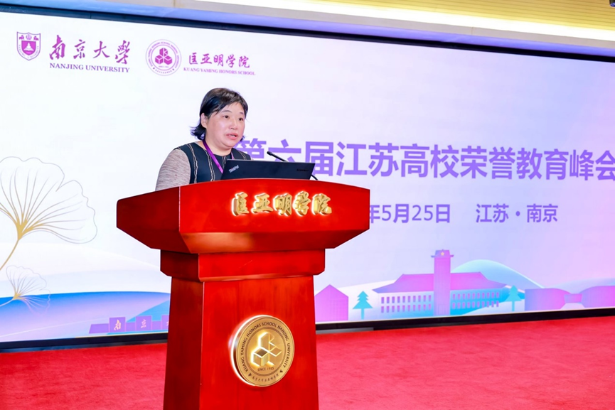 2025年5月25日,由南京大学匡亚明学院承办的第六届江苏高校荣誉教育峰会顺利举行。江苏省教育厅高等教育处二级调研员郭新宇、南京大学校长助理姜田,省内外23家荣誉学院的近百名代表参加会议。会议开幕式由南京大学匡亚明学院党委书记周媛主持。