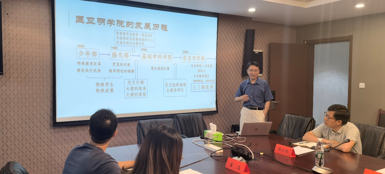 王骏首先代表学院欢迎南京工业大学2011学院米展书记、汤吉海院长一行的到来,然后详细介绍了TIBIU概况 、发展历程、培养理念、发展规划、办学成果等。他强调学院通过课程融合,注重课程架构建设,为学生提供更多自由发展路径和自由发展空间,探索更好的人才培养模式。他表示,希望两院以本次会谈为契机,进一步加强合作,为巩固和加强江苏省高校荣誉学院建设贡献力量。汤吉海也就2011学院的发展历史、招生模式、培养方案、特色工作和办学成果等进行了介绍。