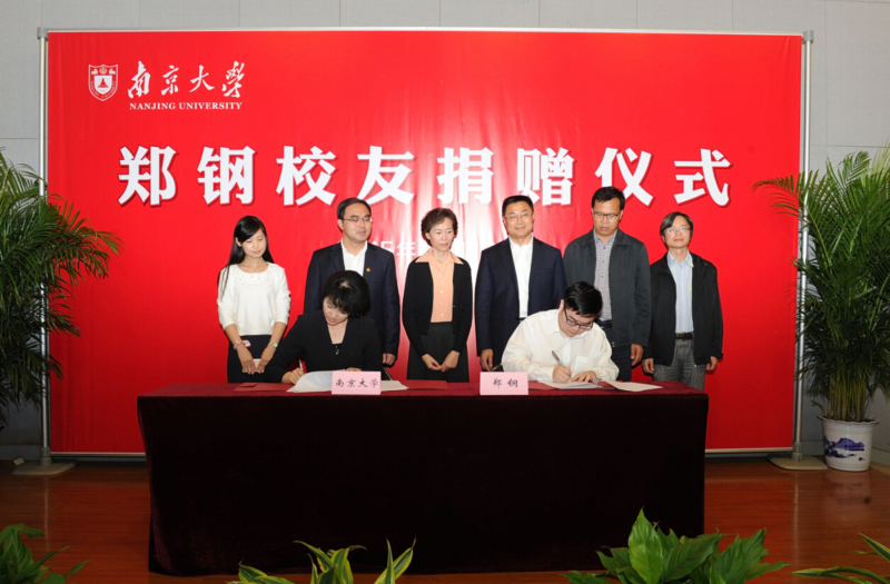 捐赠仪式上,郑钢校友与南京大学签署600万元捐赠协议,薛海林副校长向郑钢校友颁发感谢状。
