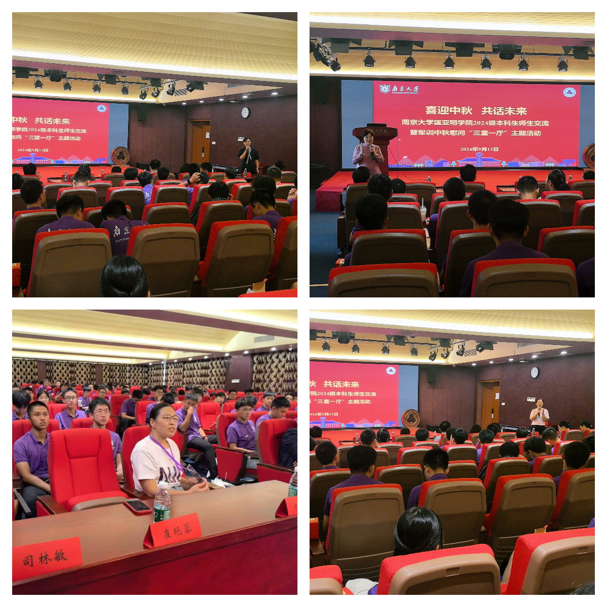 2024年9月13日,“喜迎中秋 共话未来”南京大学匡亚明学院2024级本科生师生交流暨军训中秋慰问“三室一厅”主题活动在潘琦楼国生报告厅圆满举行。匡亚明学院党委书记周媛、党委副书记周安、副院长董昊、班主任郭亚冲、老师代表以及2024级全体本科生130余人共同参加活动。活动由周安主持。