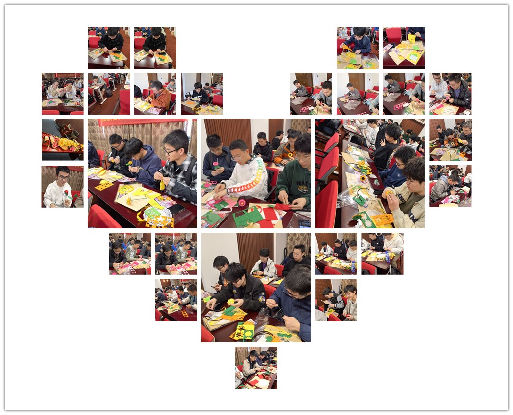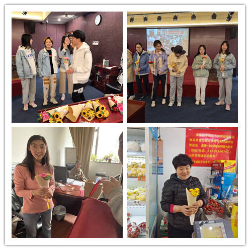 随着操作的熟悉,制作的速度逐渐加快,一些同学还开动脑筋,大大提高了手工鲜花的制作效率。一位男生表示,他与室友共同展开了“流水线作业”,每人负责操作自己最熟悉的部分,大大加快制作速度。他还戏称负责较复杂的花蕊部分折叠的同学是“掌握核心技术”的人。 在男生们的共同努力下,用时40分钟左右制作完成所有的手工鲜花,并馈赠给女同学、女老师、宿管阿姨等,作为这一节日的纪念。在随后的课间,男生们把活动现场的照片和对女生的祝福录像剪辑成视频, 配上音乐,循环播放,向女生们送上诚挚的节日祝福。