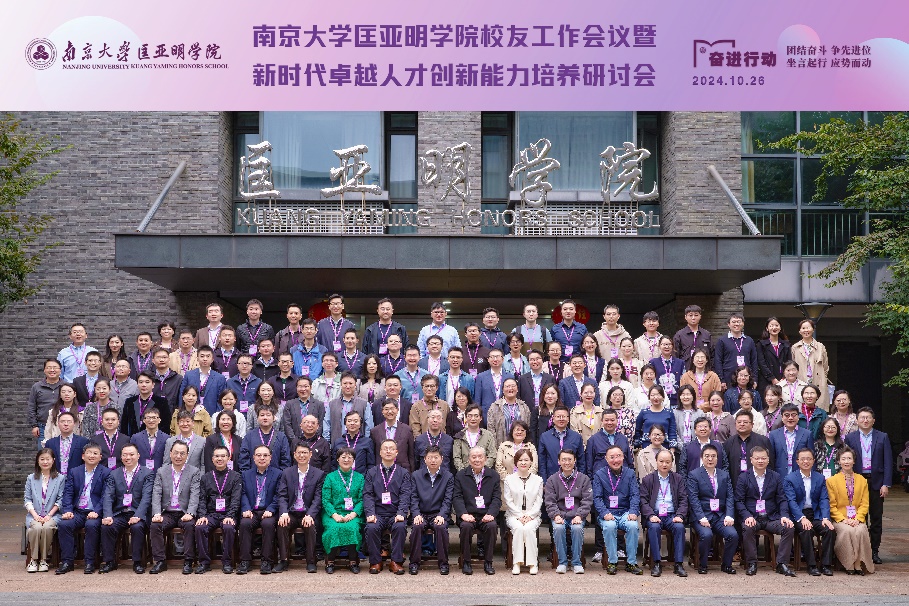 2024年10月26日,南京大学匡亚明学院校友工作会议暨新时代卓越人才创新能力培养研讨会在南京大学仙林校区召开。南京大学党委常委、副校长陆现彩,匡亚明学院(强化部)原主任、教学总监卢德馨,青海理工学院副院长张亚权,南京大学校友事务与发展工作处处长冯帆,南京大学本科生院院长、新生学院执行院长、匡亚明学院院长王骏,匡亚明学院首任少年班副主任桑志芹,匡亚明学院曾任院长、教学委员会顾问许望,匡亚明学院曾任党委书记乔蔚虹,匡亚明学院曾任院长、教学委员会顾问王炜,南京大学名誉校董、匡亚明学院2004级院友郑钢,学院党政领导班子及来自学术界、企业界和行业部门等领域的100余位校友代表出席会议。会议由南京大学匡亚明学院党委书记周媛主持。
