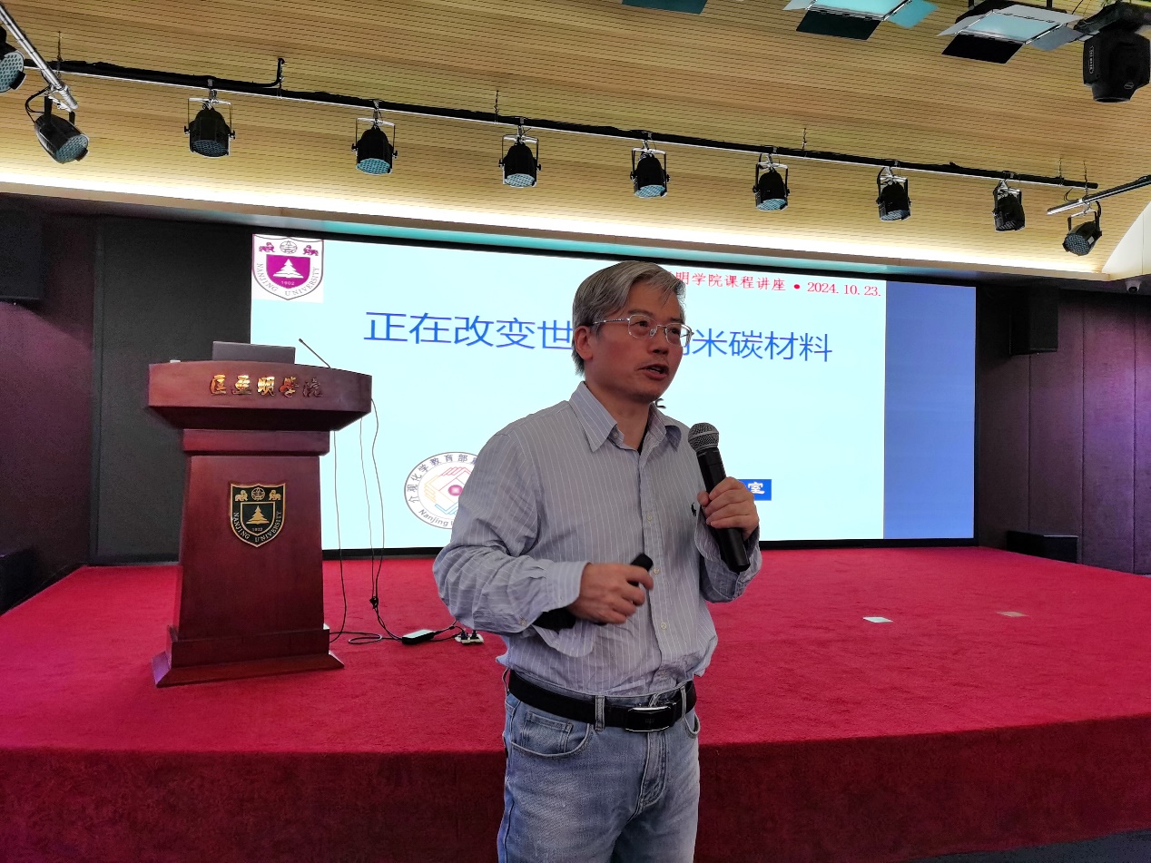 10月23日下午,24年秋季学期名师导学课程暨“科创筑梦”党团课第三讲如期进行。本次讲座邀请到南京大学化学化工学院胡征教授,题目为《正在改变世界的纳米碳材料》。